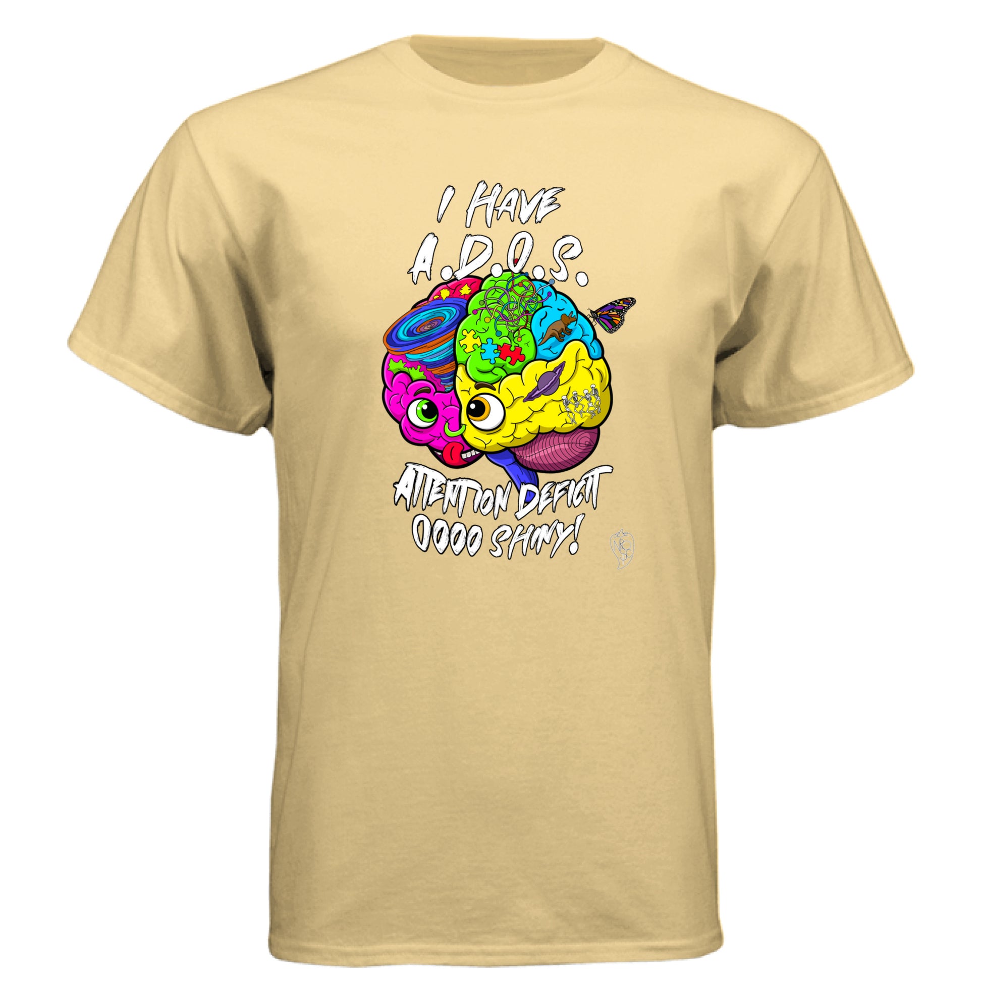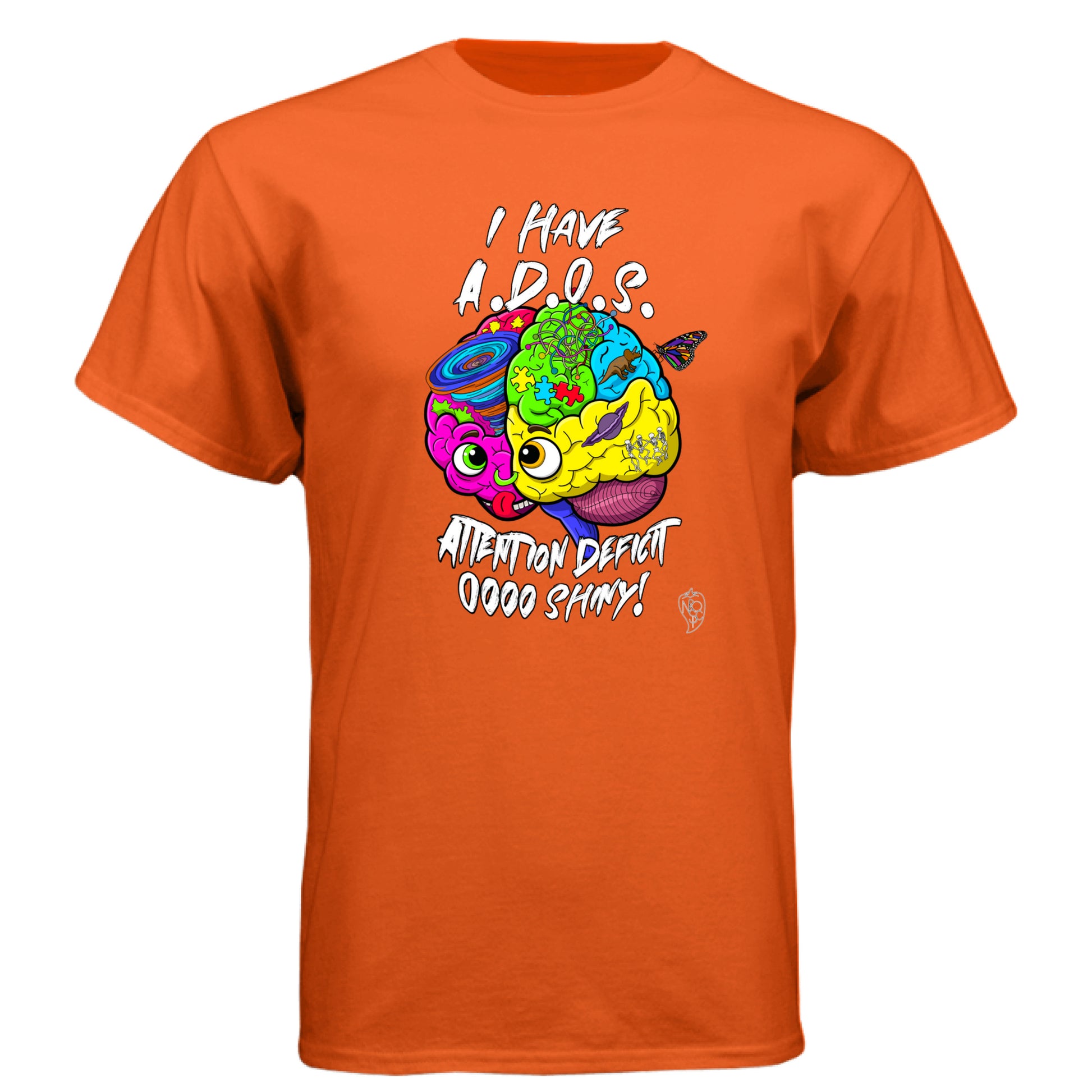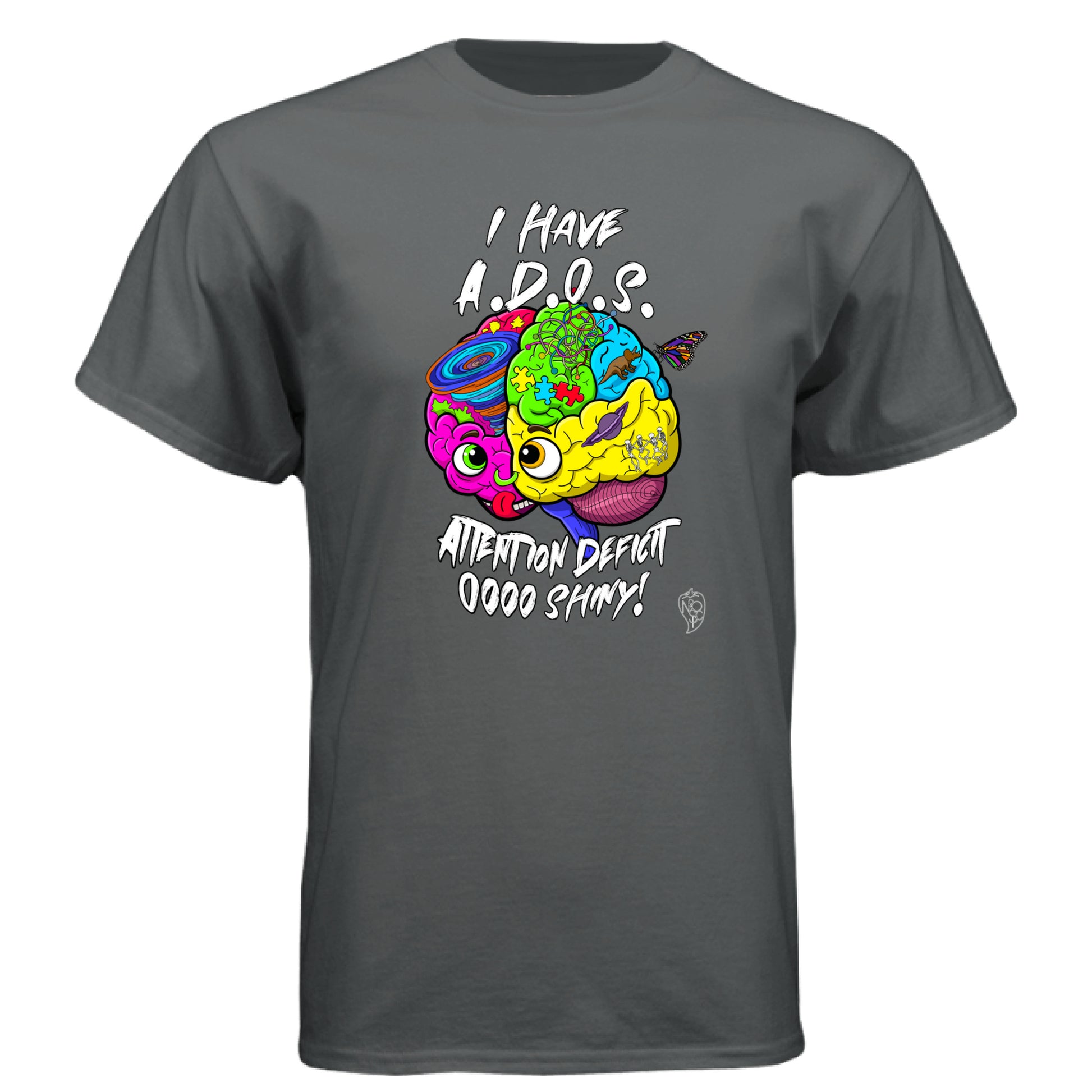 Featuring the vibrant and intricate ADHD brain design, this shirt also includes the humorous and relatable text, "I have A.D.O.S. Attention Deficit Oooo Shiny." It’s a lighthearted take on the common experience of being easily distracted, celebrating the unique way your mind works.